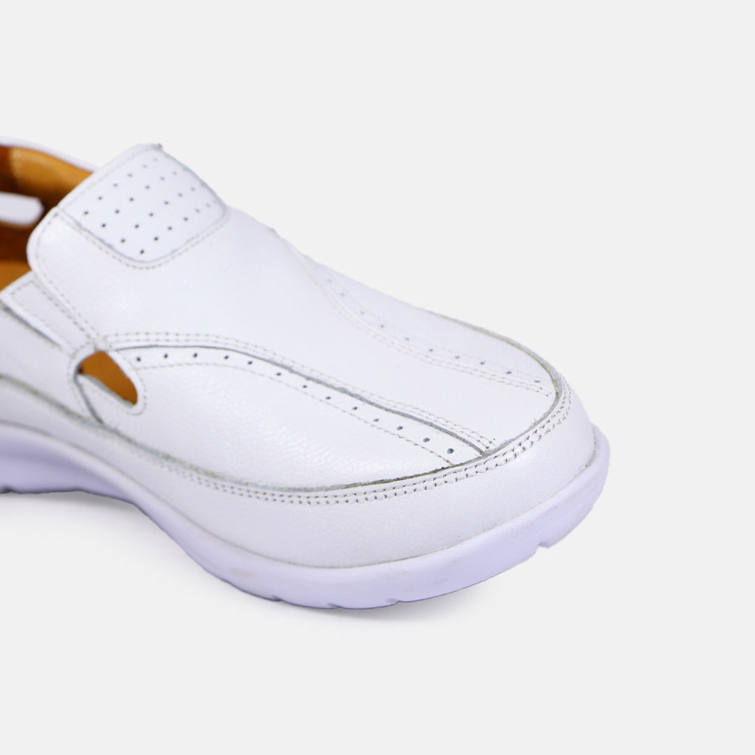 کفش زنانه طبی چرم تولید شده از چرم طبیعی به همراه کفی و آستری دوزی چرم میباشد. جنس زیره آن EVA است که باعث میشود بسیار سبک باشد و مناسب استفاده روزمره و به دلیل استفاده از چرم طبیعی پا بوی بد نمیگیرد. این محصول زیره سبک، نرم و راحتی دارد که ضد لغزش میباشد. این نوع زیره بسیار نرم است و برای وزن های بالای 100 کیلوگرم به مرور زمان له شده و ارتفاع آن کم میشود. کاملاً مناسب برای استفاده روزمره و پیادهروی، به طور مداوم و در ساعات طولانی است.